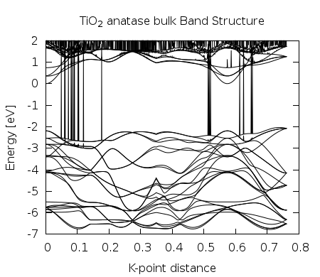 Figure 2. Anatase Band Structure (low kpoints). To have a better BS increase the NBANDS .